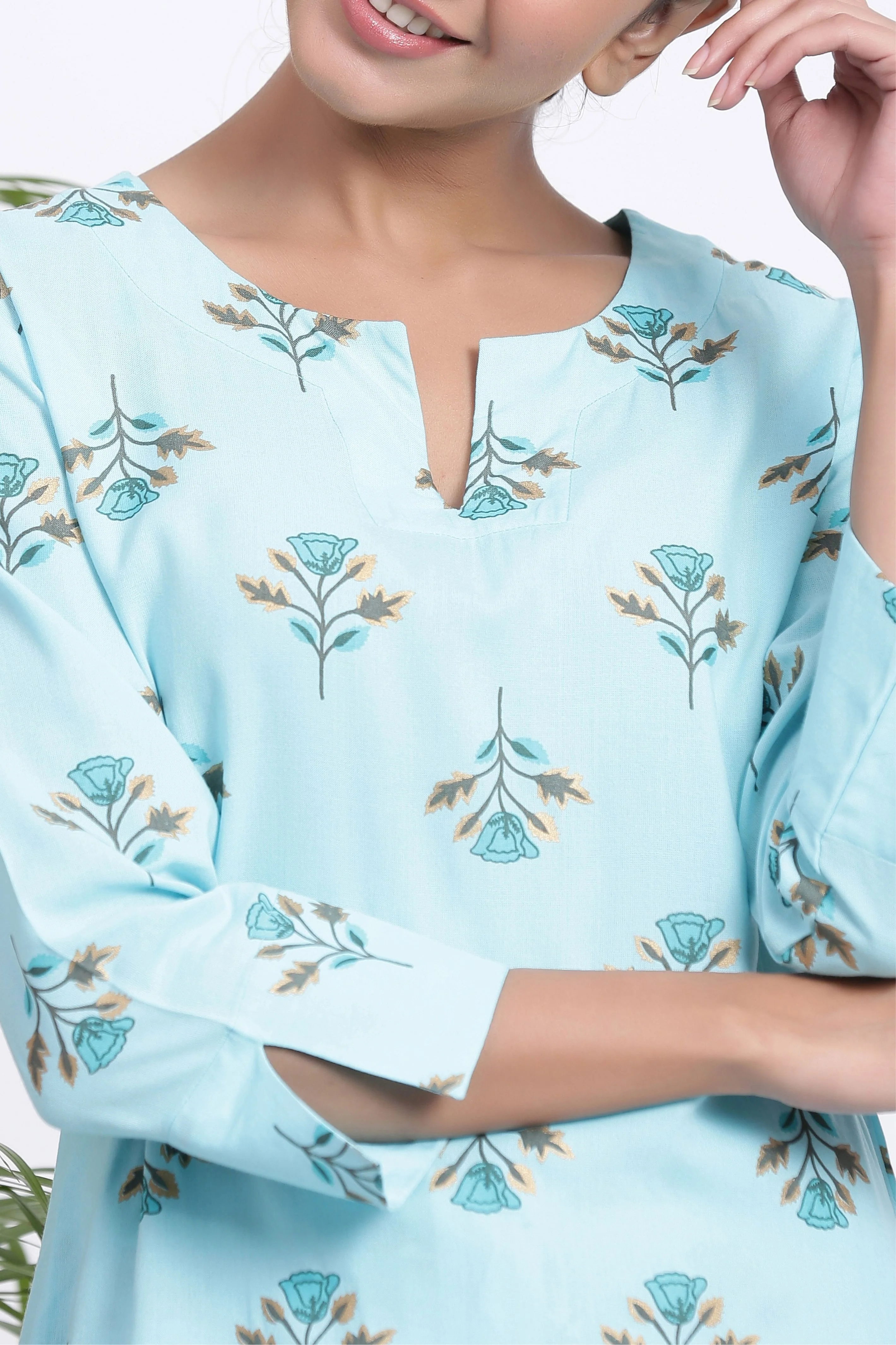 Introducing the Alice Blue Loungewear Set – perfect for all around comfort! This stylish sky blue night suit set is crafted from the softest Rayon fabric, making it the ideal choice for a comfortable day at home. The aqua color gives the set a breezy, beach-inspired look, while the relaxed fit ensures you stay comfortable all day long. Whether you’re working from home or just lounging around, this Pyjama Set is essential for your wardrobe. Get ready for ultimate comfort with the Alice Blue Loungewear Set!