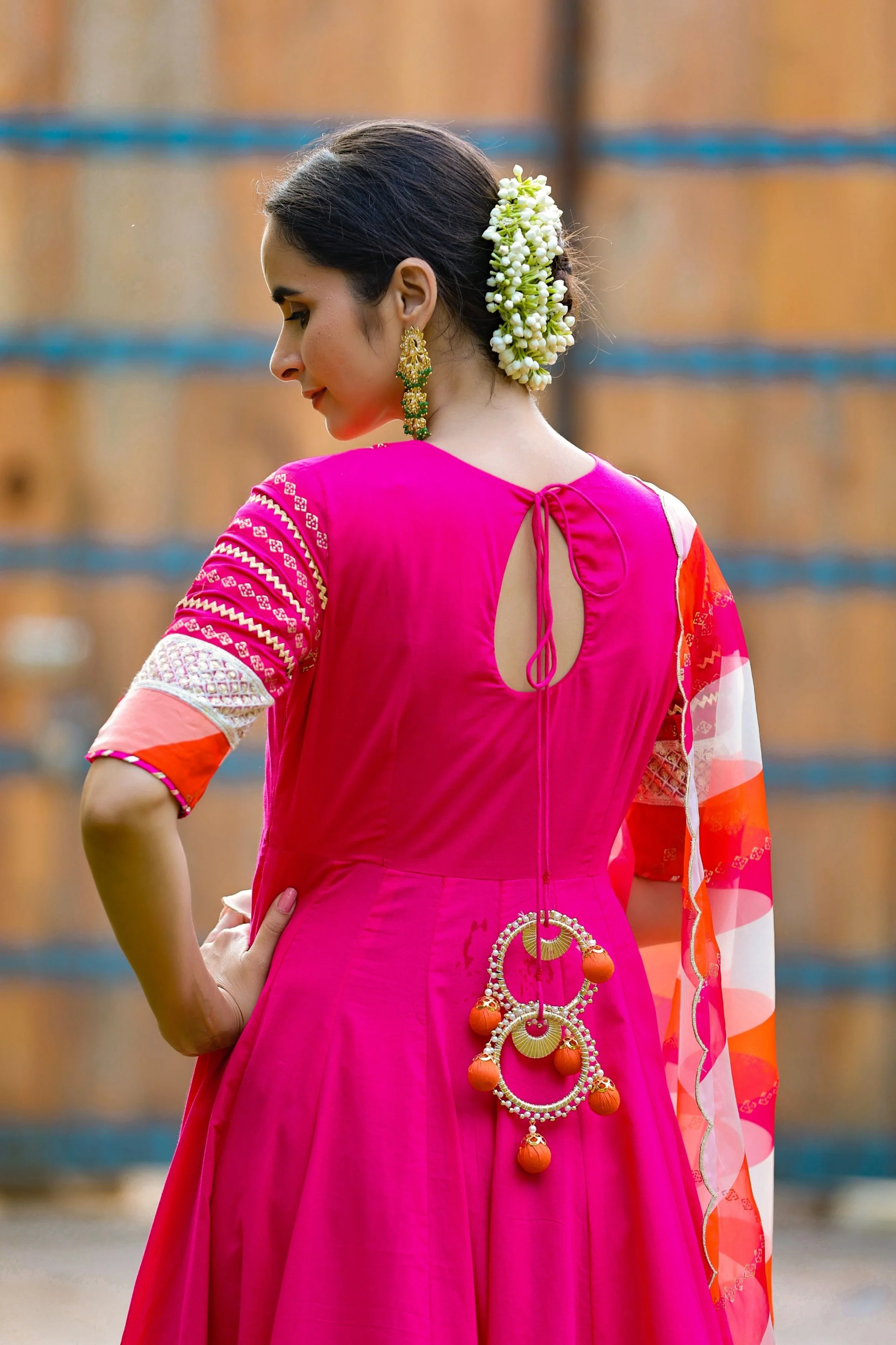 | Kurta Style | Pure Cotton Flared Anarkali Kurta. Embellished with intricate Gota, thread and pearl work. Drop cut and Dori Tassels at back. |