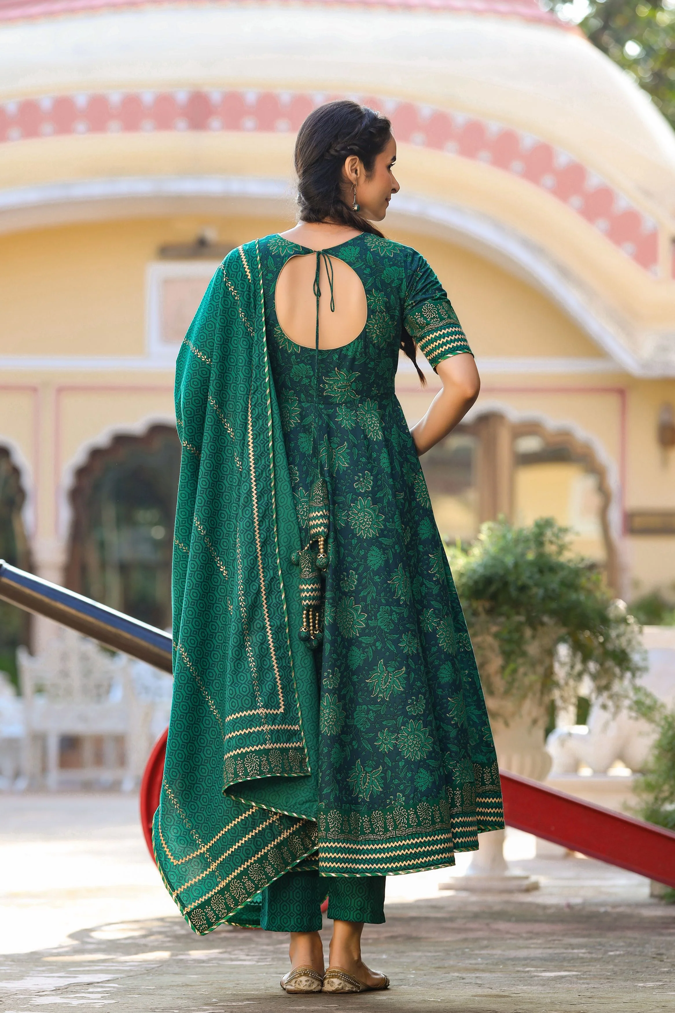 Prepare to make a statement with Vrinda Suit Set with Dupatta from Gillori! This set of three features a double circular gold printed flared kurta with an embroidered yoke, straight pants, and a cotton dupatta embellished with gold print and laces. Its neck features a round front and a circular drop cut with heavy tassels, and its elbow sleeves complete the look. The suit set is finished with a zip opening for easy wear. This elegant and eye-catching design is perfect for any special occasion.